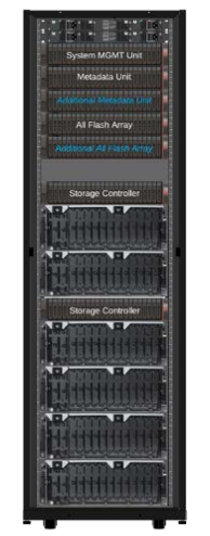 The all HDD configuration is used mainly for large sequential I/O and modeling and simulation. The base rack provides up to 90 GB/s read and write up to approximately 7.5 PB of usable capacity, depending on the HDD capacity used. The expansion rack provides up to 120 GB/s read and write up to 10PB of usable capacity, depending on the HDD capacity used.