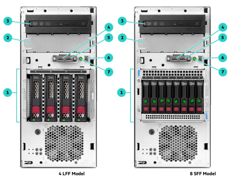 The HPE ProLiant ML30 Gen10 server offers flexibility in different storage needs. With the choice of four Large Form Factor (LFF) non-hot-plug, hot-plug, or eight Small Form Factor (SFF) hot-plug drive options, you can find the right storage fit for your growing business.
