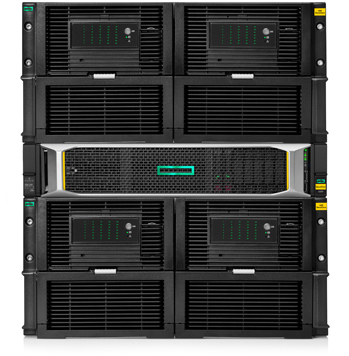 HPE StoreOnce 5250 offers disk-based backup with deduplication for longer term on-site data retention and off-site disaster recovery with best-in-class scalability and performance for larger midsize and enterprise data centers. It also provides an ideal replication target for up to 64 remote or branch offices. This highly scalable 7U to 12U appliance delivers from 36 TB to 864 TB of usable local capacity up to 1.7 PB of Cloud Bank Storage capacity and easily tackles shrinking backup windows with backup speeds up to 41 TB/hour* using HPE StoreOnce Catalyst.