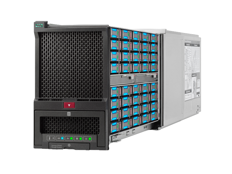 The Synergy D3940 Storage Module is configurable as ultra-dense direct attached zoned storage or can be deployed as flexible scale-out software defined shared storage when virtualized and provisioned by StoreVirtual VSA.