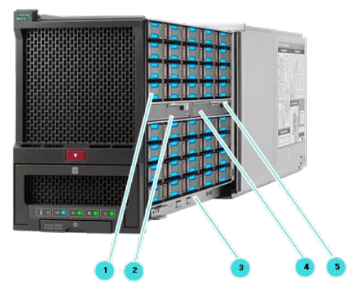 | Connection | Single or dual Synergy 12 G SAS Connection Modules in each frame with storage modules Each storage module comes standard with a single I/O Adapter and can be configured with a second I/O Adapter for redundancy One Smart Array P542D controller is required in each compute module connecting to the storage module |
